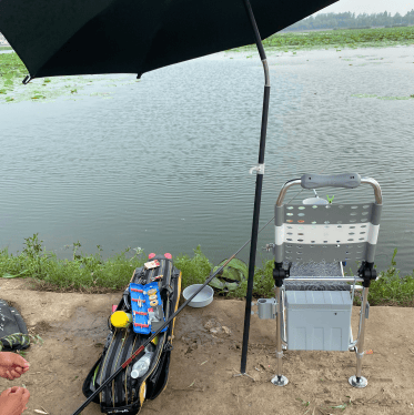到了地方后大概9点多了,开始干活了 装配钓椅、打窝又支伞… 大概20分钟东西准备好了。调漂、搓耳抛出了今的第一杆,因为我调的饵料物化较快,所以第一杆很快结束。