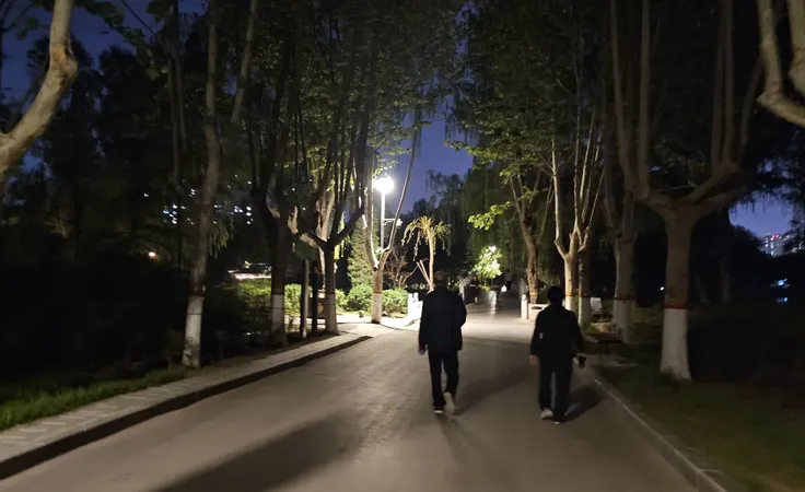 - 公园外围下坡,路面宽阔、路灯明亮