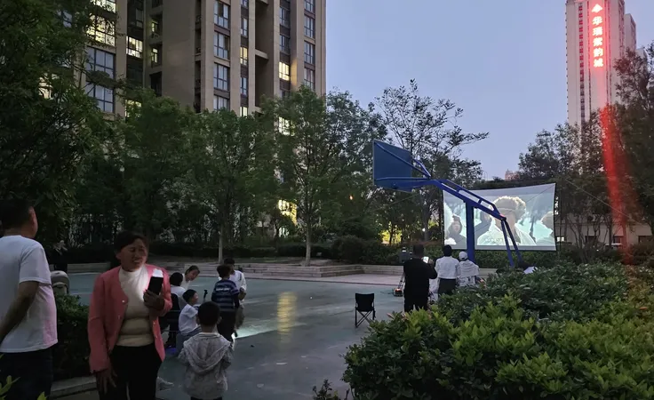 晚上刚下班,我直接回家换了运动装,出了门正好看到篮球场在放电影《智取威虎山》,我喜欢露天电影的氛围,有空一定要去看一场