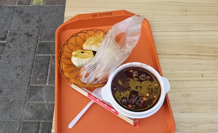 早餐还是老三样,这次的粥我多加了糖,高糖分有助于我长途骑行