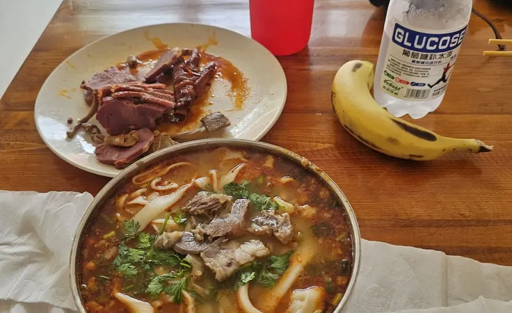 点了一碗烩面和一个鸡爪,牛肉是我自带的。说实话,第一次见到餐桌上这么干净的盘子…鸡爪也很入味,咬一口我就扔了,太清真了