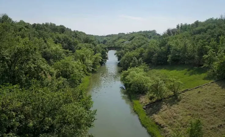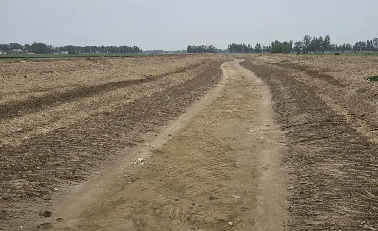 经过东夏亭镇人民政府旁的一条支流,干涸得厉害,河床都裸露出来了。不知是人为抽干,还是自然干旱所致。在这段行程中,这样的场景我已经见过好几次。