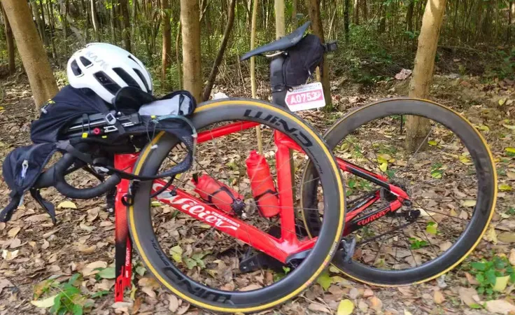 爆胎后,我穿着锁鞋推行了两公里左右,找了一家宾馆住了下来,我也懒得检查哪漏气了,碳轮坏了没有,一切都不重要了,现在就想着咋带车去义乌,我没有车包,高铁肯定是上不了。