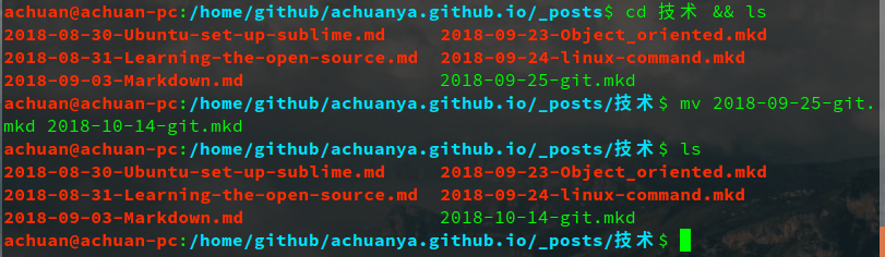 # 当新文件添加到暂存区后,我们现在就准备创建第一个提交与注释了,不过在这之前我们要绑定Git账户,之后进行push操作需要填写账号\密码$ git config --global user.email "achuan@achuan.io"$ git config --global user.name "achuanya"提交代码并注释
