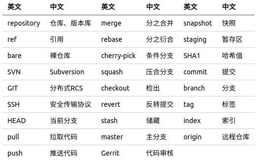 未跟踪(untrack):新增加文件。已修改(modified):已修改但为写入到暂存区。已暂存(staged):已经添加到暂存区。已提交(committed):已经添加到远程仓库。Git专业术语中英文对照表