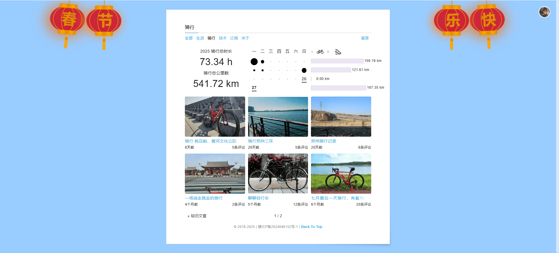 // 显示全年骑行时长和公里数 displayTotalActivities(activities);})();New:春节快乐红灯笼